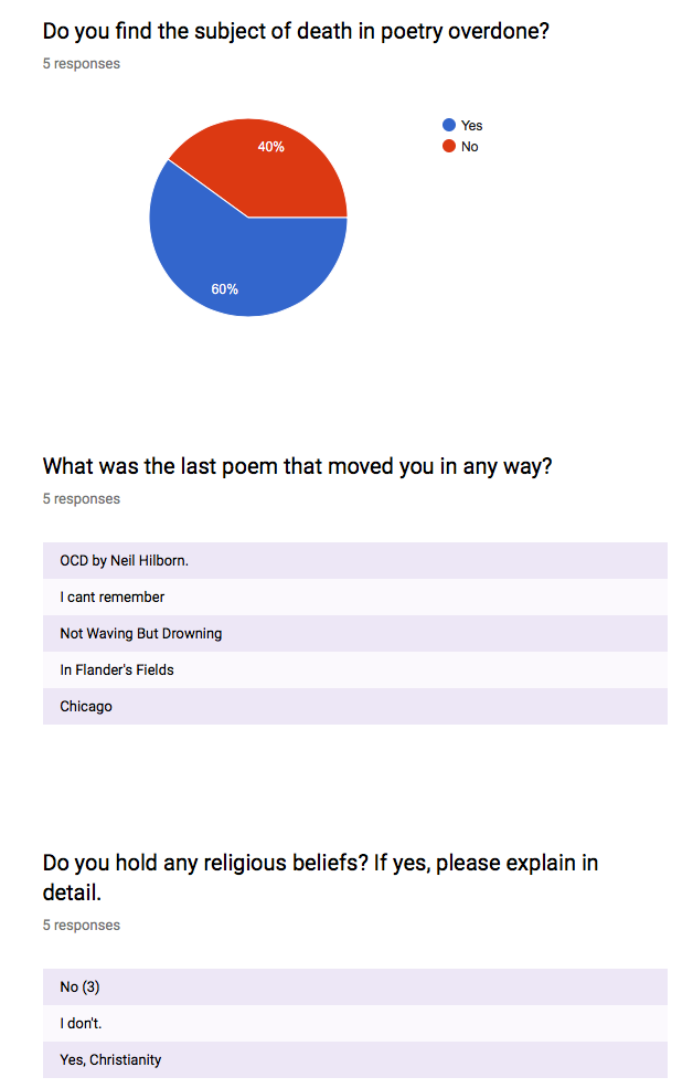 My primary research indicates that people usually prefer not having to read, this is advantageous given that my project is in video form. This is backed up by 80% of people preferring to see poems presented as an edited, visually pleasing video.